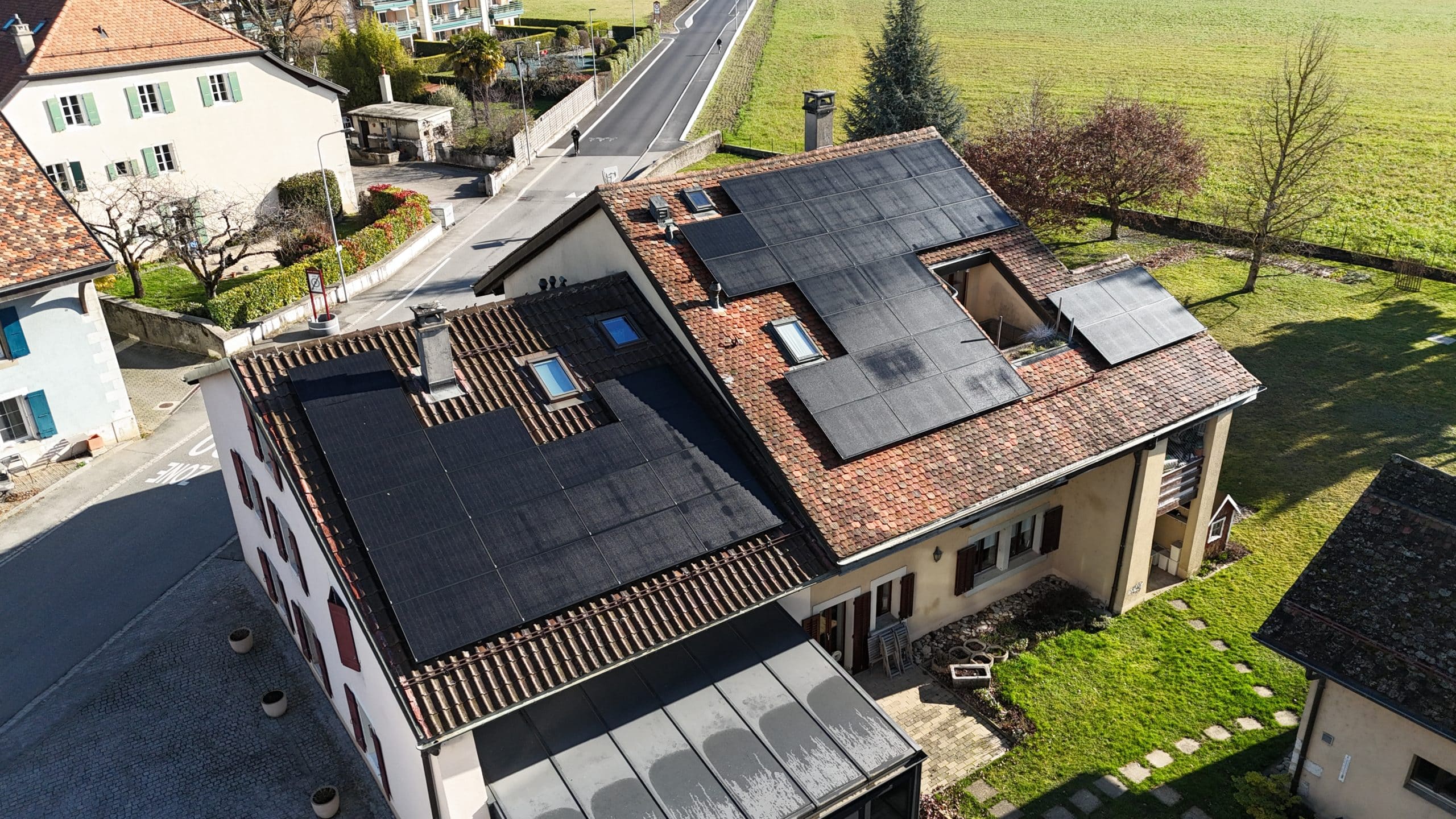 Installation photovoltaïque réalisée avec soins en coordination avec un couvreur partenaire local afin de respecter l’état de l’art de la couverture.